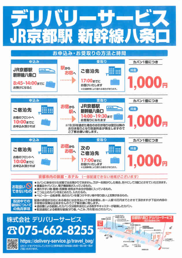 旅行の際、どうしても気になる「手回り荷物」。駅からお宿へ。お宿から駅へ。お宿からお宿へ。「京都観光をもっとラクに楽しんでいただきたい!」デリバリーサービスが旅の思い出作りをお手伝いさせていただきます。